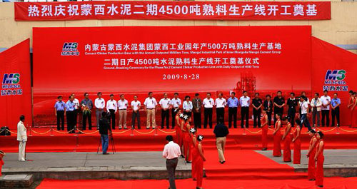 8月28日上午,蒙西水泥股份公司生產(chǎn)經(jīng)營(yíng)中心鮮花怒放、彩旗飄揚(yáng),內(nèi)蒙古蒙西水泥集團(tuán)蒙西工業(yè)園年產(chǎn)500萬(wàn)噸熟料生產(chǎn)基地二期日產(chǎn)4500噸水泥熟料生產(chǎn)線開(kāi)工奠基儀式在這里隆重舉行。