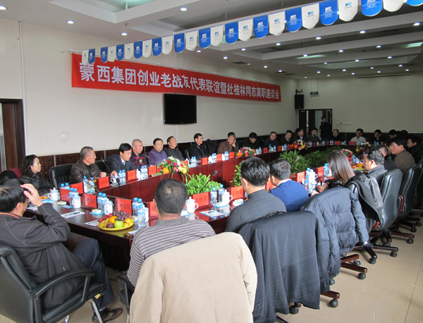 12月26日,蒙西園區彩旗飄揚、紅幅高懸,蒙西大廈一樓會議室鮮花吐艷、暖意融融,“蒙西集團創業老戰友代表聯誼暨杜桂林同志離職座談會”在這里隆重舉 行。為蒙西發展立下汗馬功勞現已離職的創業老戰友代表許士韶、趙建國、孔健民、黃云峰、孫曙光、毛國玉和曾經為蒙西工業園區規劃建設付出心血和汗水的林世 強、丁玉祥應邀參加座談會,格蘭系各成員企業董事長、總經理(總裁)、工會主席、格蘭公司及集團公司本部全體人員60多人參加了會議。